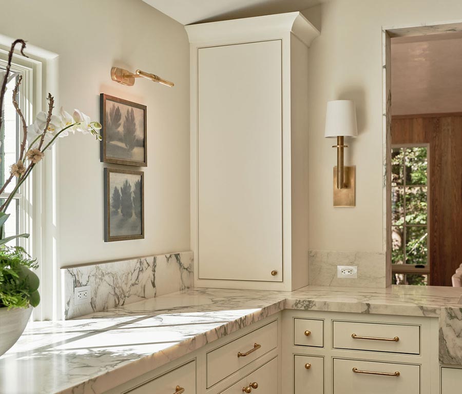 F.E. Trainer served as the general contractor for the renovation and addition to this private residence in West Knoxville. A large addition off the back of the home changed the layout and flow of the home, while all new finishes on the inside breathe new life into old spaces. Elegant features—like marble cased openings and marble shower jambs—are high end features used in multiple places. White oak flooring was selected for its durability and lasting beauty. The kitchen's focal point is a La Cornue range, which is centered on an island and framed by cylindrical pendant lights. A solid surface marble backsplash transitions seamlessly from the matching countertops. Brass finishes were featured heavily in bathrooms and bedrooms, while a bonus room bunkhouse offers a versatile space for entertaining children.