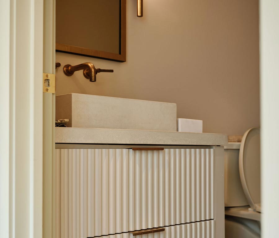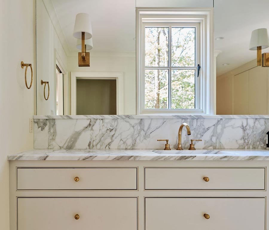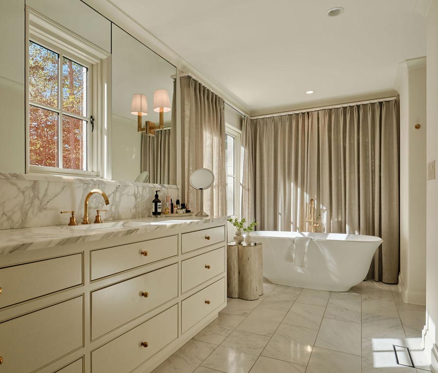 F.E. Trainer served as the general contractor for the renovation and addition to this private residence in West Knoxville. A large addition off the back of the home changed the layout and flow of the home, while all new finishes on the inside breathe new life into old spaces. Elegant features—like marble cased openings and marble shower jambs—are high end features used in multiple places. White oak flooring was selected for its durability and lasting beauty. The kitchen's focal point is a La Cornue range, which is centered on an island and framed by cylindrical pendant lights. A solid surface marble backsplash transitions seamlessly from the matching countertops. Brass finishes were featured heavily in bathrooms and bedrooms, while a bonus room bunkhouse offers a versatile space for entertaining children.