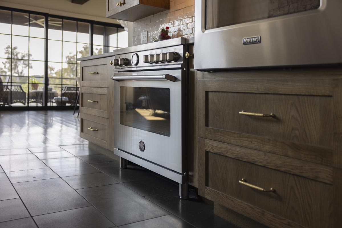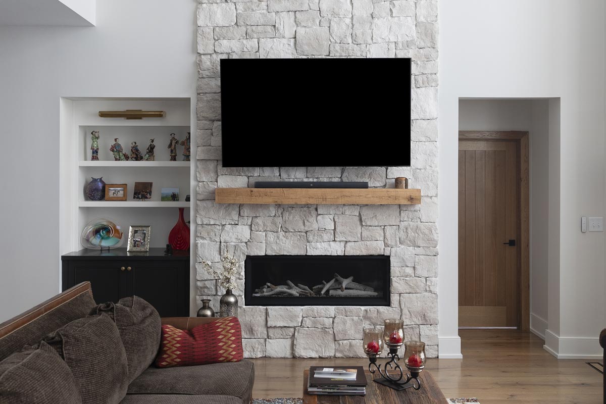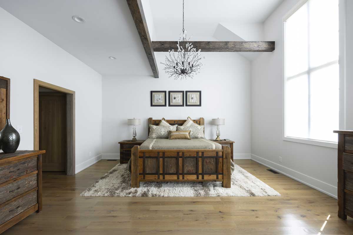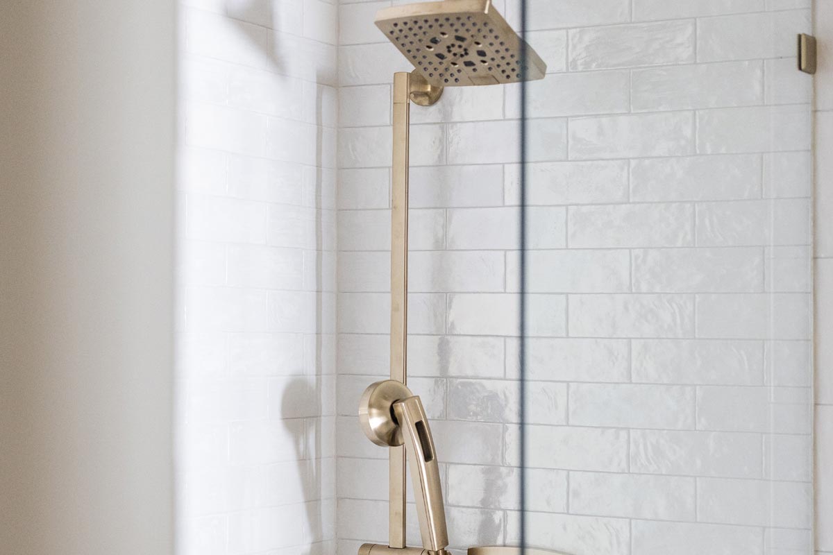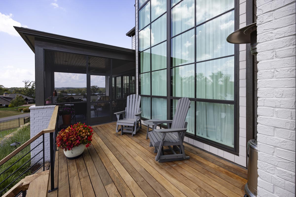 F.E. Trainer completed the whole home renovation of this Loudon County home in 2024. The residence blends modern and classic architectural styles with clean, contemporary interiors to achieve a bold and distinct look. Rustic materials were selected to surround the homeowners with beloved textures from the Rocky Mountains. Forged brass accents are used in the kitchen alongside oak cabinetry and floors. Rough-textured apron sinks in stone and firecrete mimic the trout rivers they frequent in Wyoming. A beautiful cast concrete soaking tub in the master bathroom is perfectly matched to wooden-style floor tiles and textured subway tiles. Forged steel doors and windows bring a primitive touch to rooms, along with large, exposed timber beams. Quarter-sawn white oak doors are another distinct feature of this renovation, as is the large window wall on the back of the house.